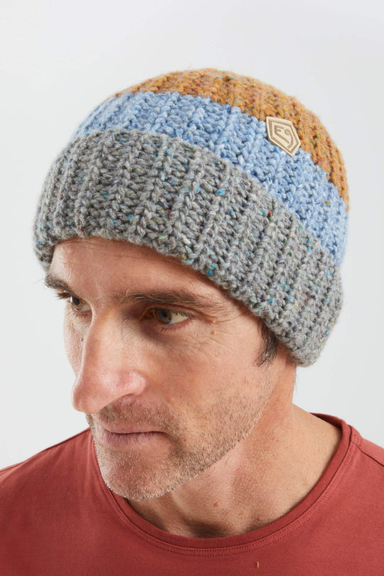Beanie a tre colori, caldo e confortevole per le temperature fresche. Il mix di materiali è studiato per non irritare e garantire una vestibilità salda senza scivolare.