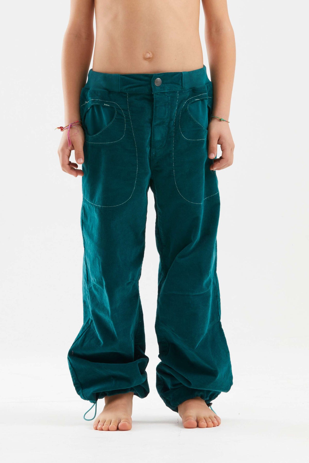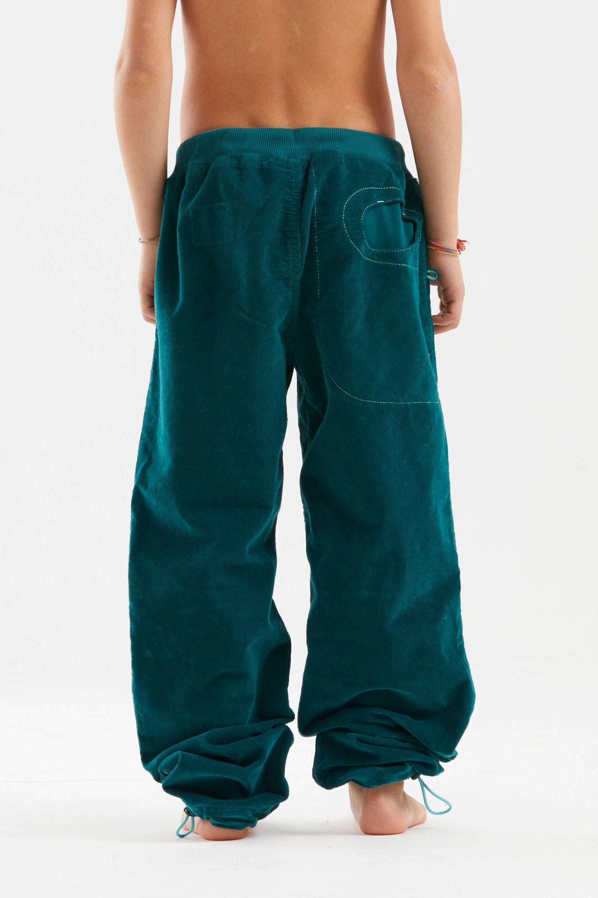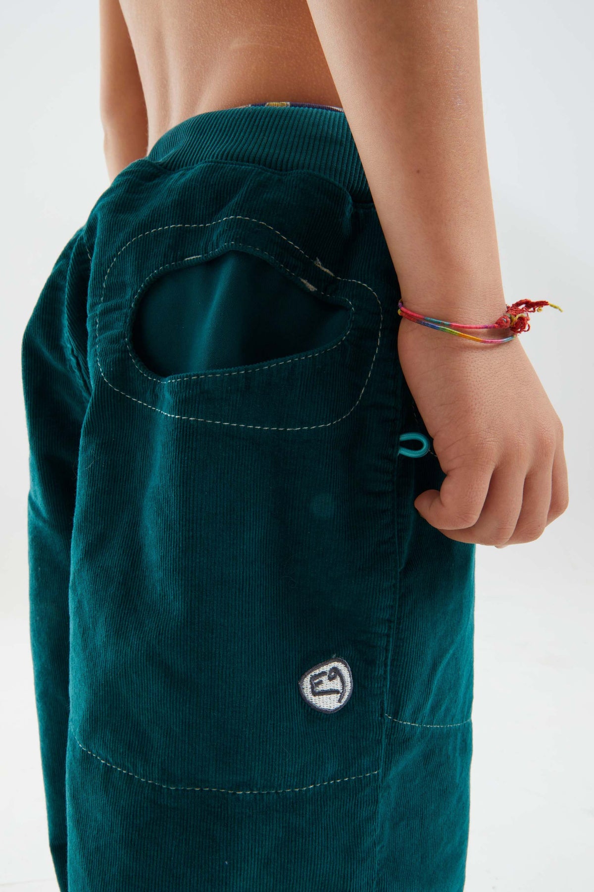 Pantaloni da outdoor e da arrampicata in velluto di cotone biologico, con tasche rivestite internamente in gabardine. Ricamo sul retro e dettagli pratici.