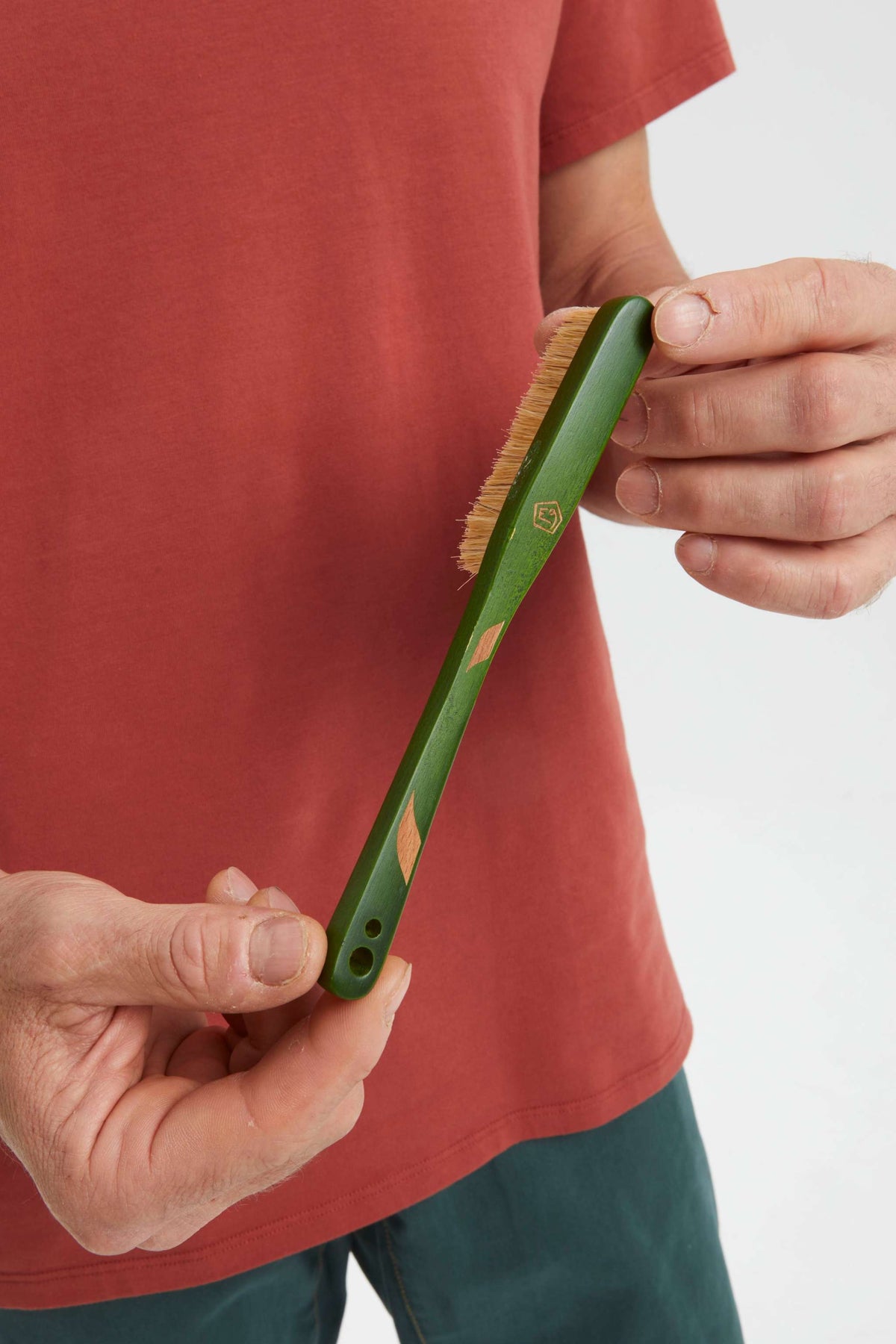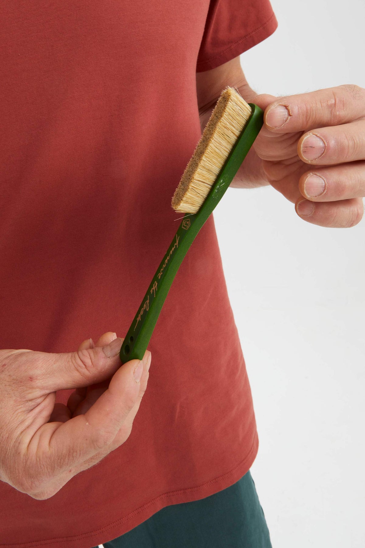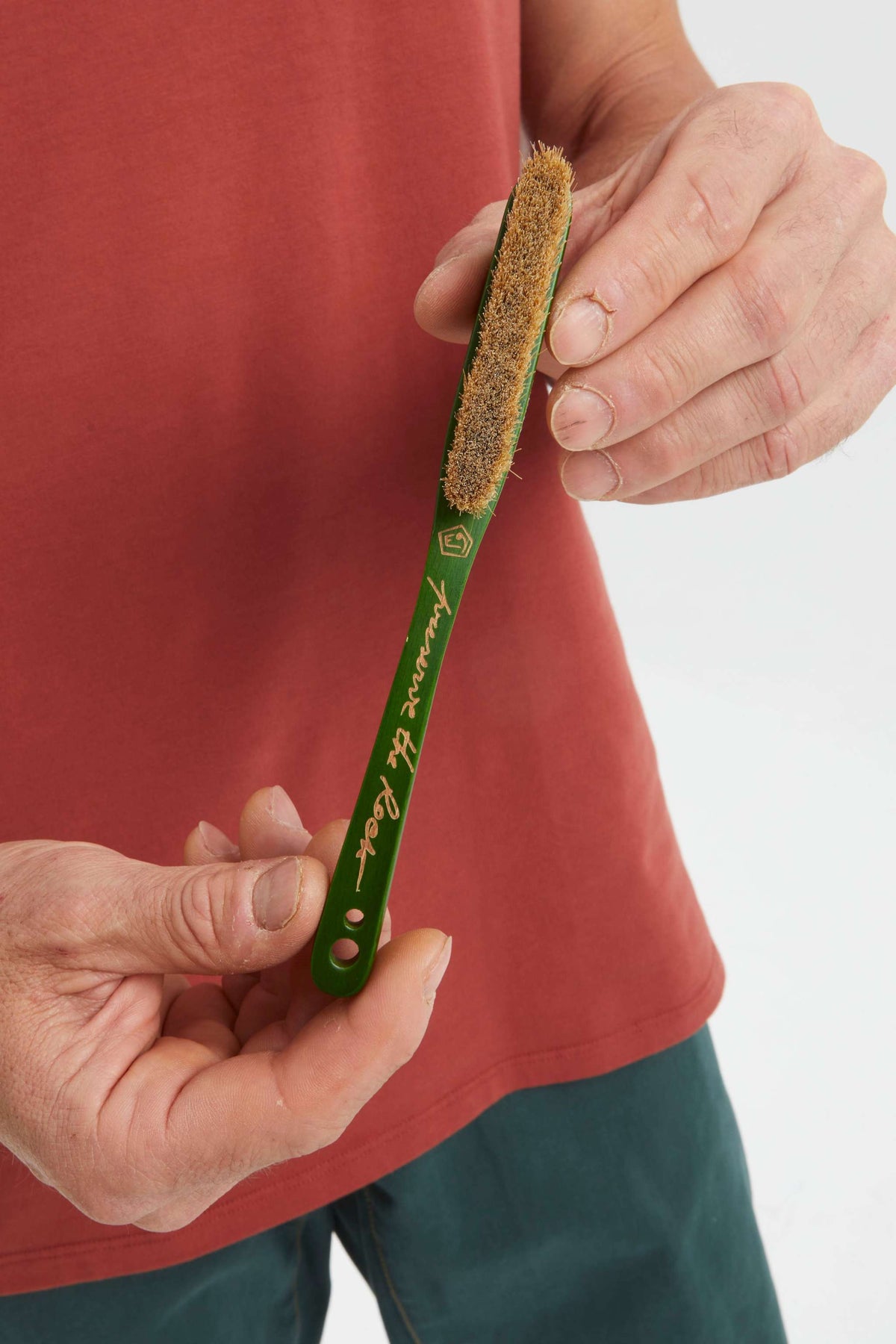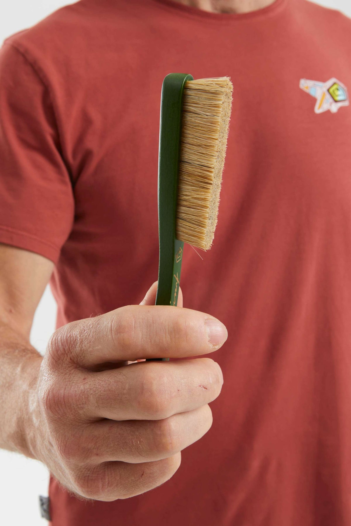 Spazzola da arrampicata in legno con setole naturali, progettata per raggiungere e pulire anche le prese più difficili. Disponibile in diversi formati e design con incisioni laser. :contentReference[oaicite:0]{index=0}