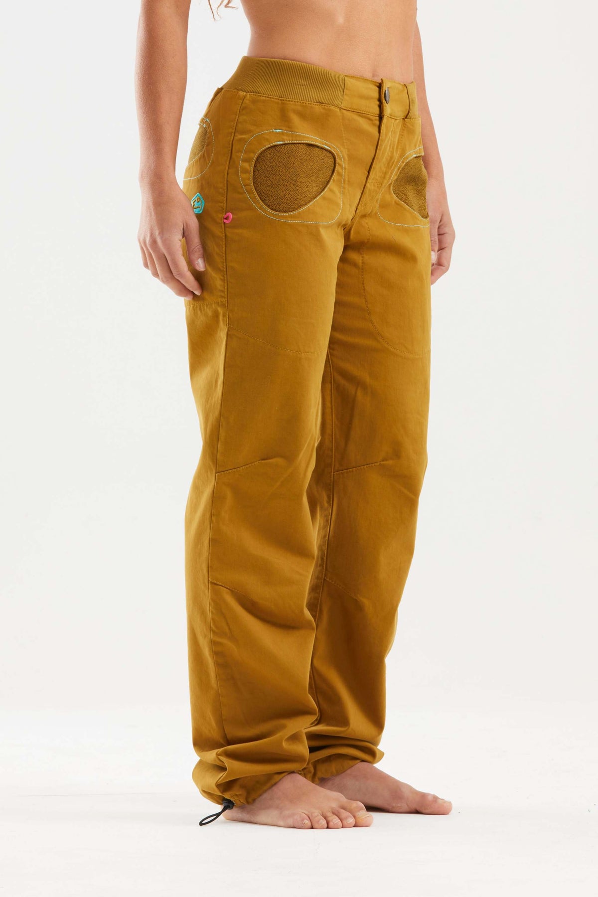 Pantaloni da arrampicata urbana Onda Slim2 in raso di cotone biologico, tasche interne stampate, ricamo sul retro.