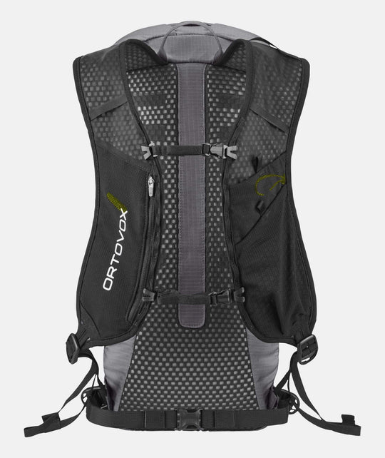 Light, flexible and functional: with only 380 g, the Light 15 crossbar is designed for fast and long climbs. With a simple move it is possible to pull this superleleggero mountain backpack from the shoulder straps so that it adheres perfectly to the body. A removable life belt and a second pectoral belt, also removable, guarantee perfect adherence even in the presence of heavy loads. The Airvent Back System ensures effective air circulation and high comfort thanks to the grid fabric with coast and perforated foam. Ergonomic and breathable shoulder straps allow you to distribute the weight evenly on the body. Even from a technical point of view, the Light 15 crossbar is absolutely exceptional: in the three pockets in the shoulder straps there is room for a 500 ml soft flask, a mobile phone and a bar. Helmet and sticks can be fixed to the backpack in the blink of an eye. For the utmost sustainability, the external fabric is made for 72% in recycled polyamide, making the cross light extremely robust and durable. Higher, faster, faster: the Light 15 crossbar is distinguished by its reduced weight and its numerous functions. The ideal companion for fast and demanding tours in the mountains.