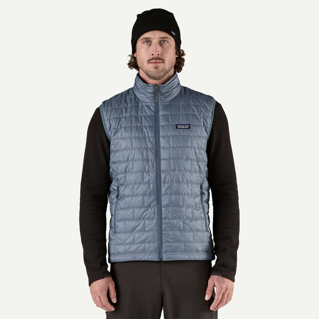 Eco-friendly Nano Puff Vest with recycled polyester, lightweight insulation, and Fair Trade Certified production.