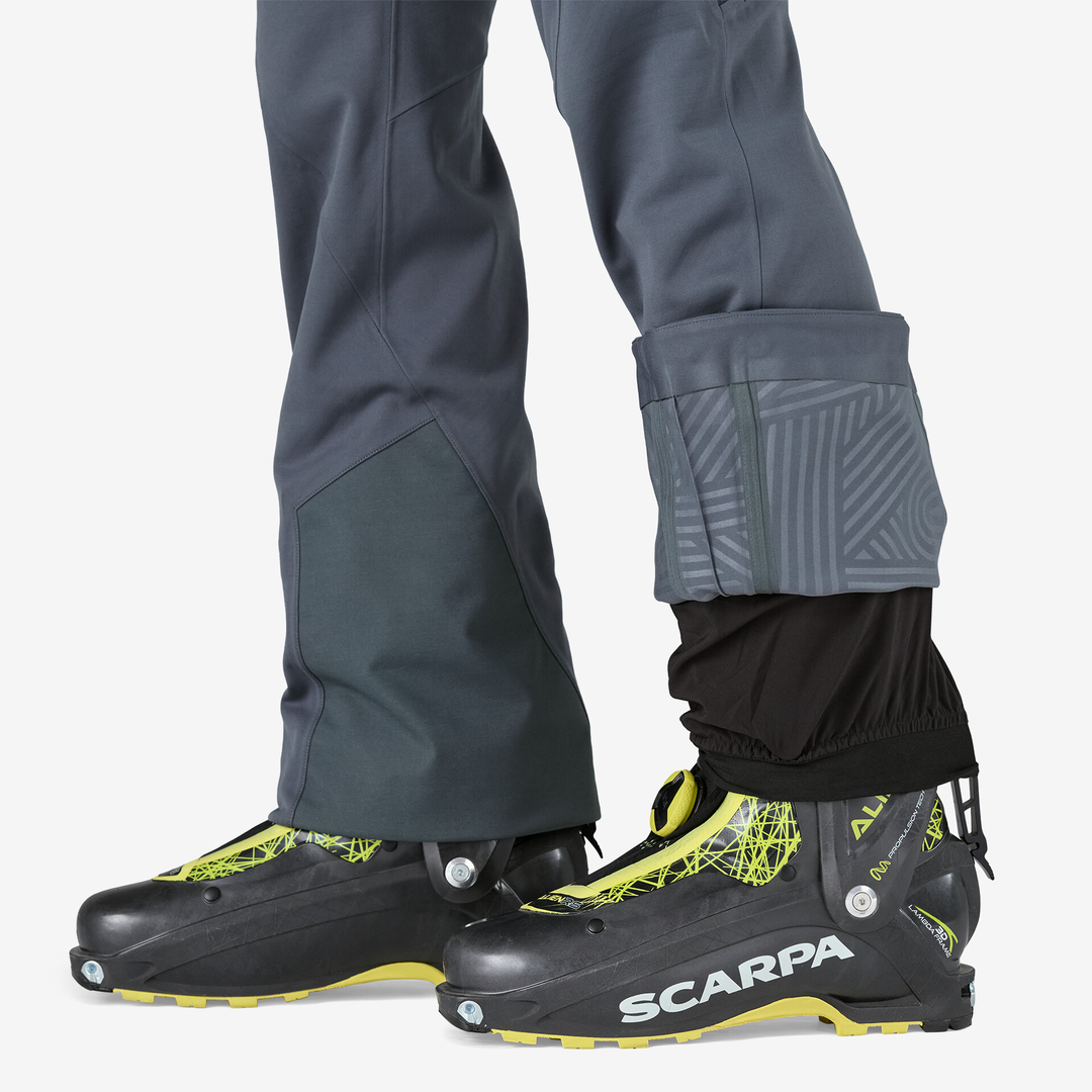 Ghette to leave the snow out; Sturdy protections on the gamba background to protect the interior and the lower edge of the trousers, adjustable in three different positions by means of a snap and zip