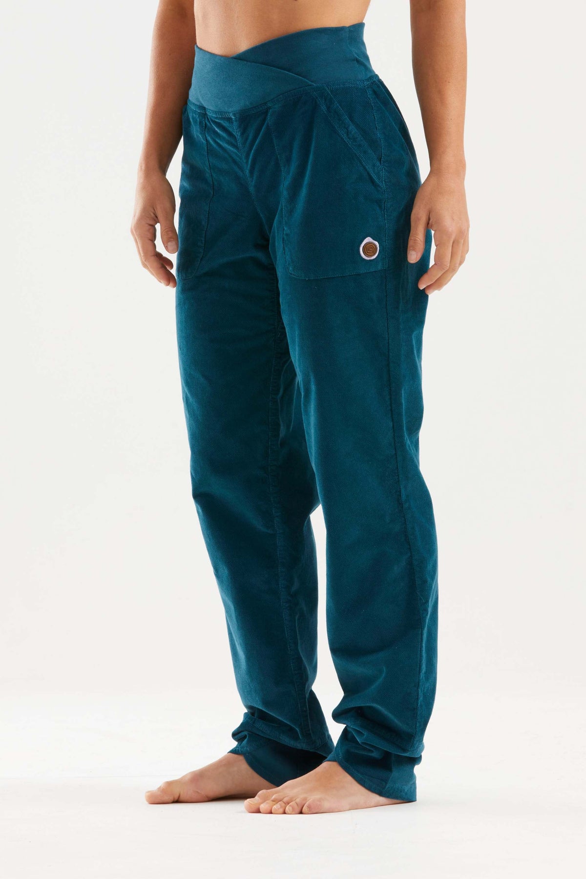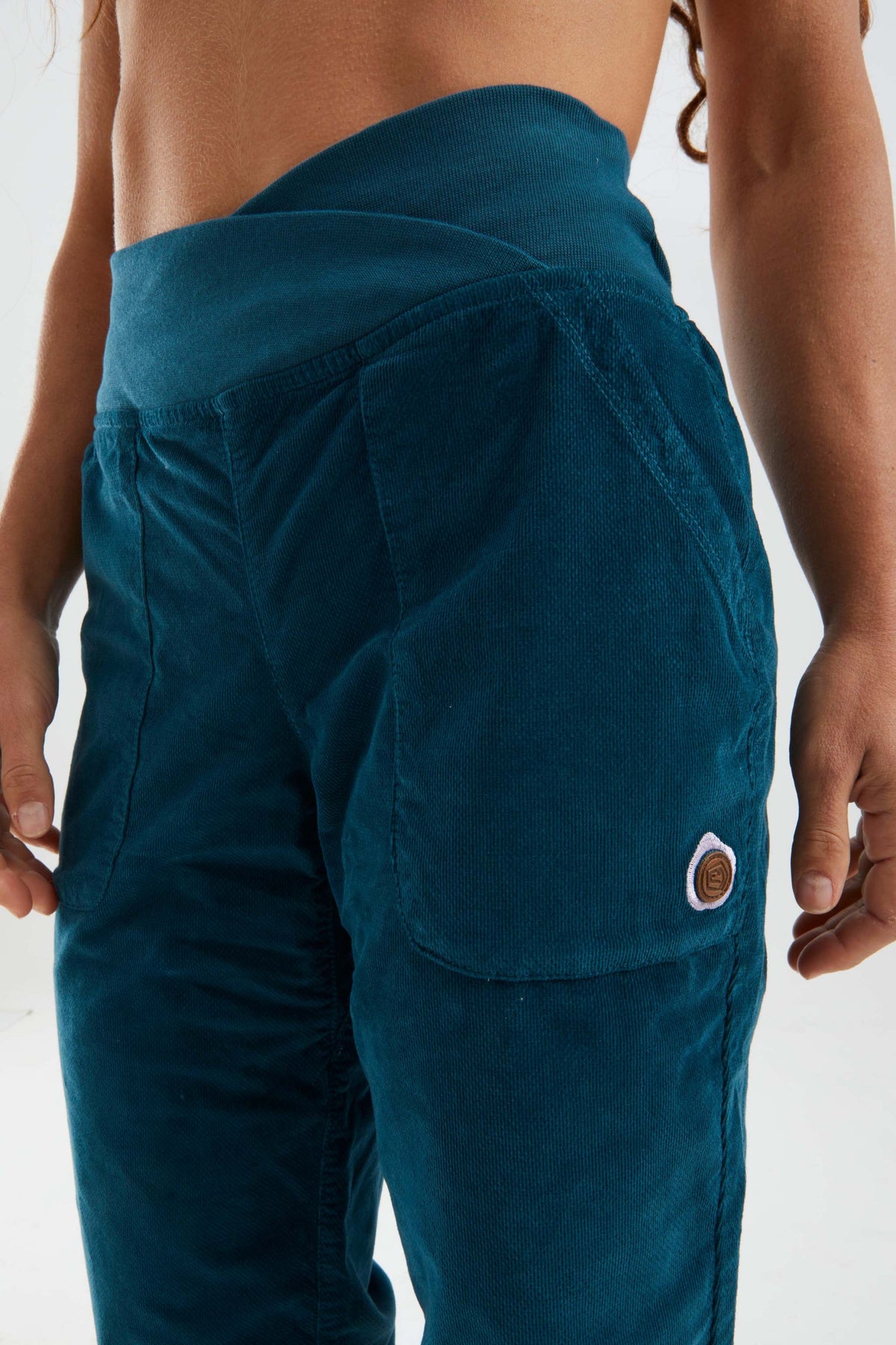 Pantaloni da outdoor e arrampicata in velluto testurizzato e cotone biologico. Caratterizzati da vita sagomata, fondo gamba distintivo, ricamo e patch in eco-pelle sulla tasca sinistra. Vestibilità rilassata, massimo comfort. Prodotto in Italia.