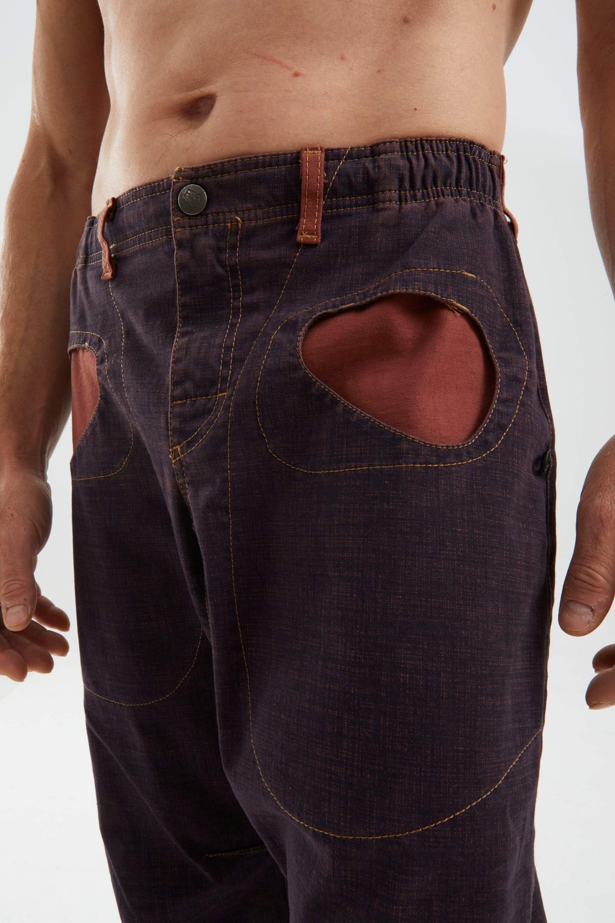 Pantaloni outdoor e da arrampicata in gabardine stretch di cotone organico stampato. Tasche realizzate in tessuto a contrasto. Ricamo sul davanti. Cintura interna con nastro elastico E9. Passante per cintura. Fondo gamba regolabile. Portaspazzole su entrambi i lati. Buon comfort e vestibilità regolare.