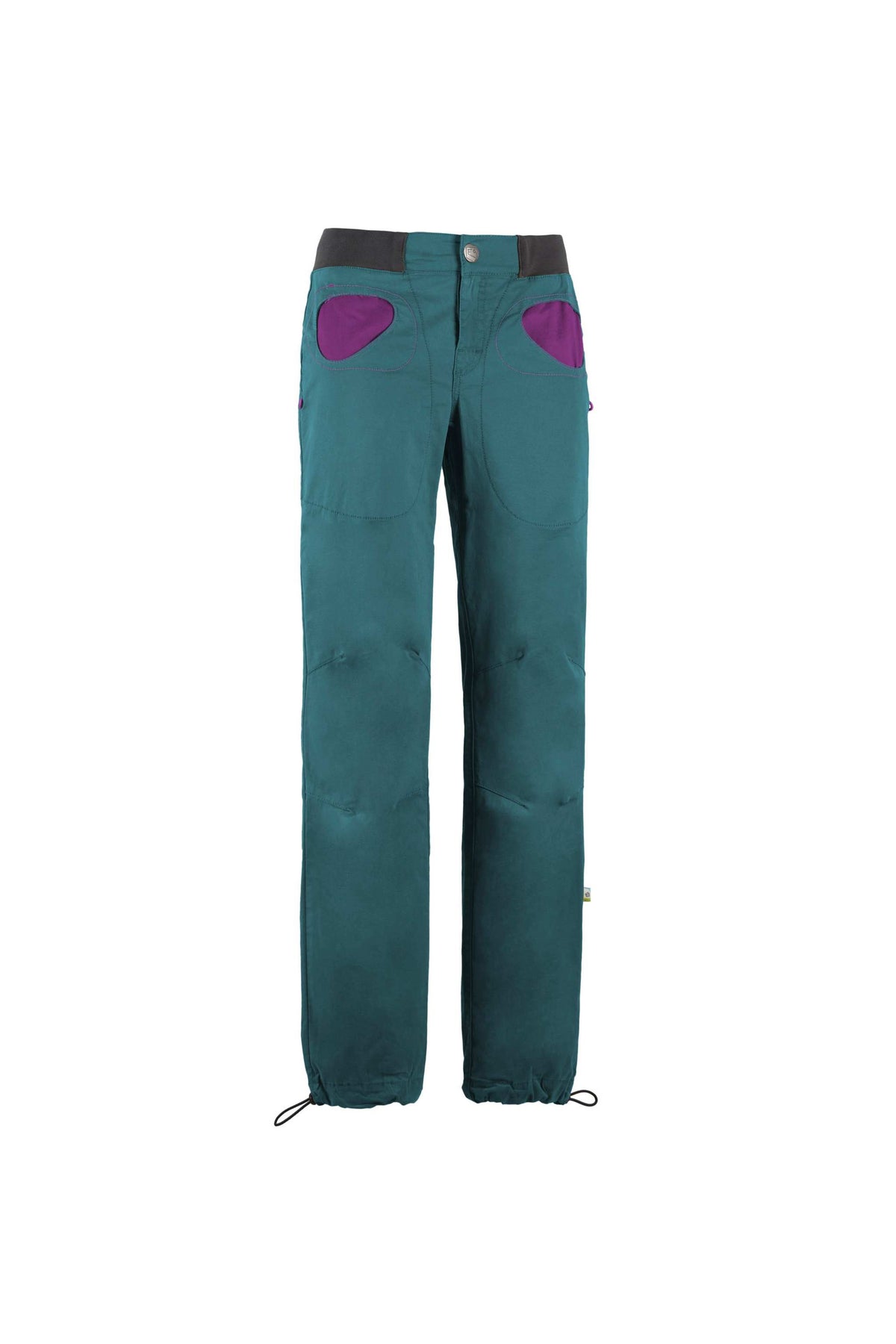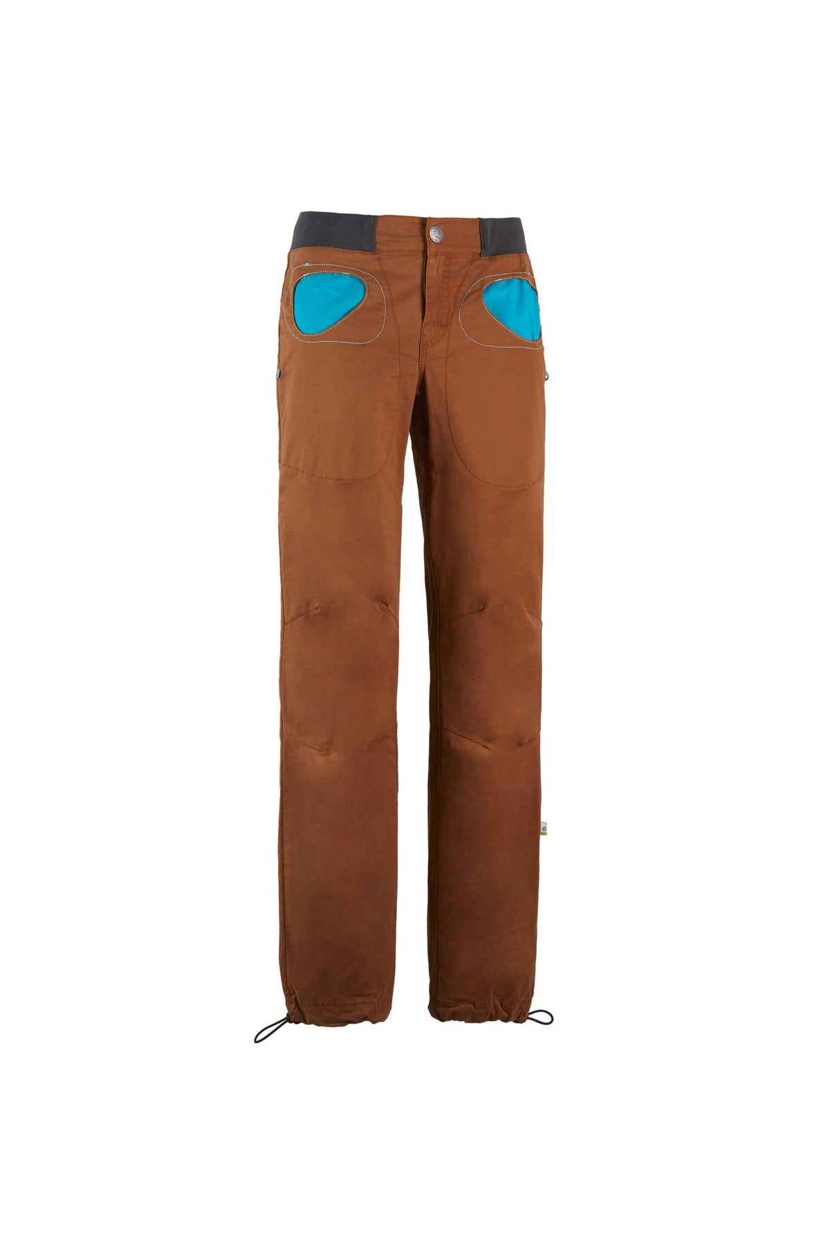 Pantaloni outdoor e da arrampicata in gabardine stretch. Cotone organico. Tasca con tessuto in contrasto colore. Fondo gamba e vita regolabili. Portaspazzole su entrambi i lati. Buon comfort e mobilità. Vestibilità slim. Fatto in Italia.