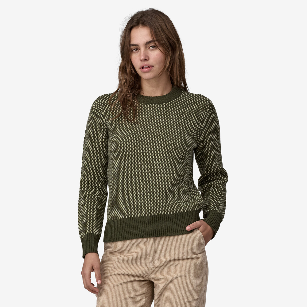 Pensato come maglione ideale da indossare tutti i giorni quando il freddo inizia a farsi sentire o come caldo e resistente strato per le notti in campeggio. Realizzato in tessuto misto di lana e nylon, entrambi riciclati, viene proposto con lavorazione jersey, a trecce o jacquard.