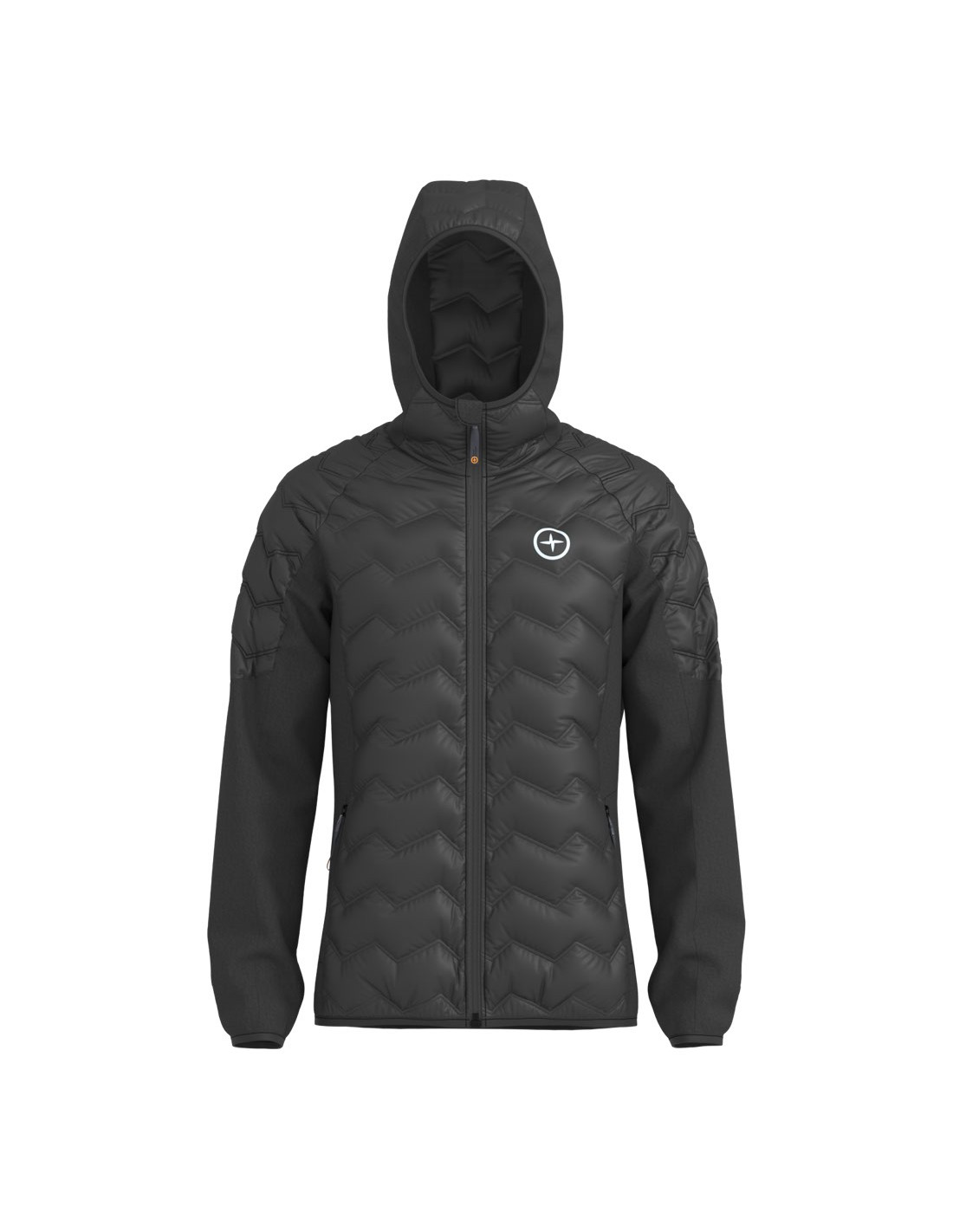 Giacca ibrida da uomo con pile 100% riciclato e la parte imbottita anch’essa al 100% riciclata, adatta a tutte le attività outdoor sia invernali che per le mezze stagioni.