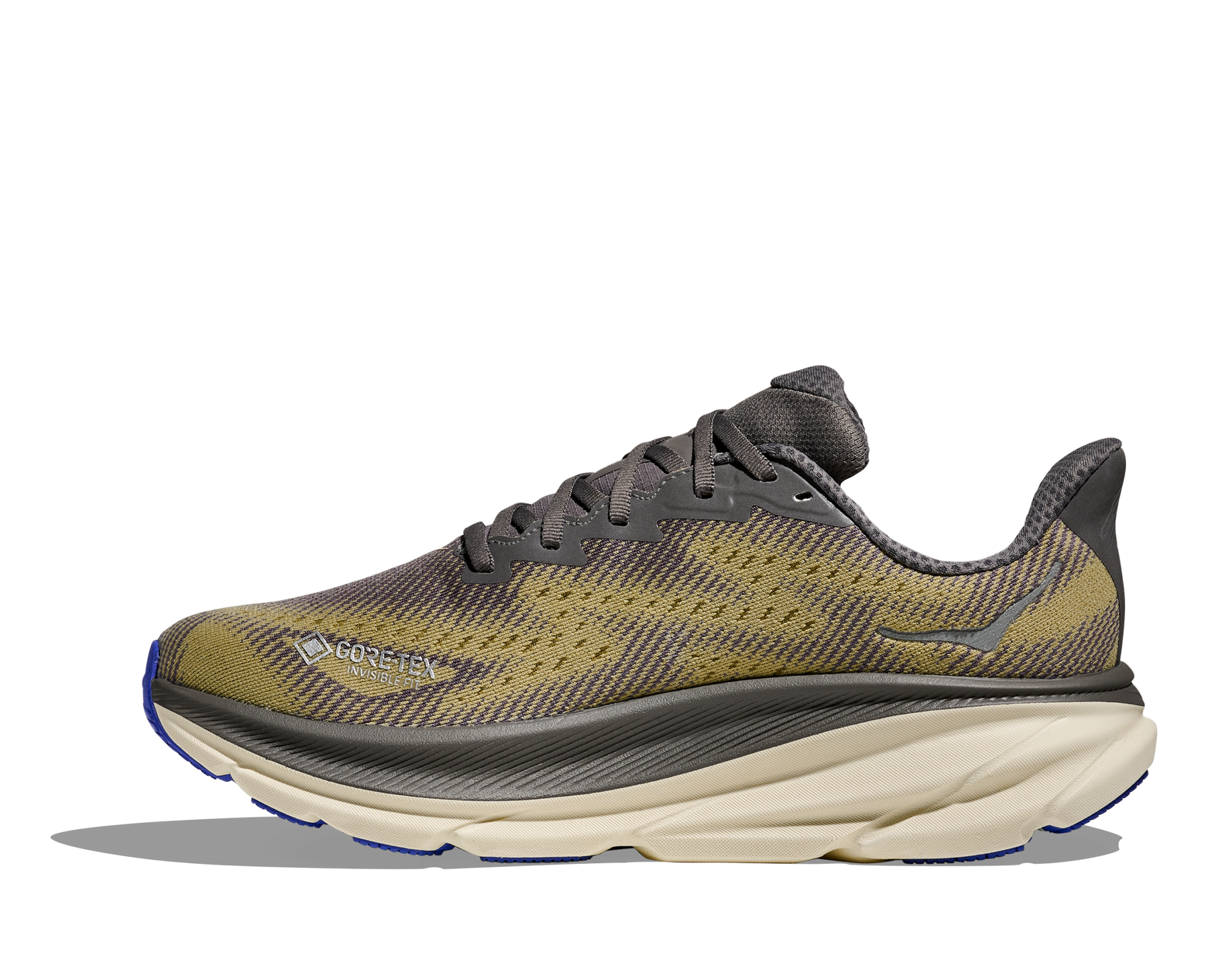 Scarpa Hoka Clifton 9 GTX nera impermeabile con GORE-TEX, traspirante, mesh chiuso, suola antiscivolo.