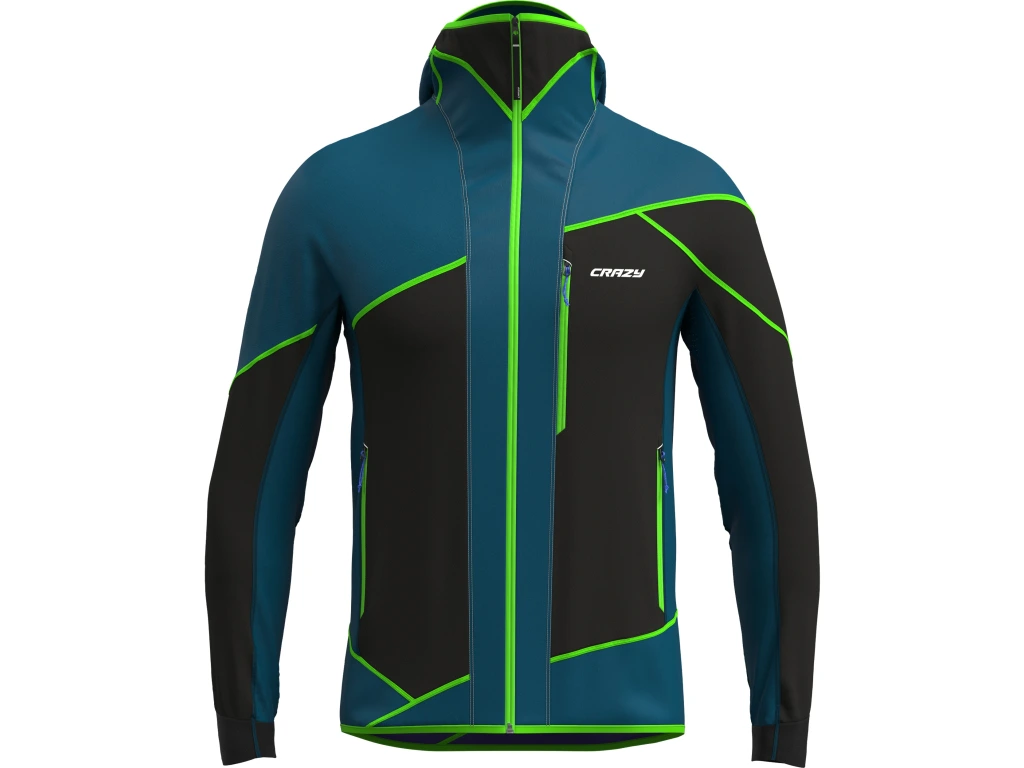 Giacca ibrida con cappuccio, per l’attività outdoor a media / alta intensità. Perfetta per lo sci alpinismo nelle giornate ventose, quando uno strato imbottito sarebbe eccessivo. Questa giacca è realizzata in tessuto soft shell traspirante con trattamento idrorepellente DWR e proprietà antivento, gli inserti sono in morbido e traspirante fleece Vuelta italiano; i dettagli riflettenti consentono di essere visibili anche nei momenti di scarsa visibilità. Apertura frontale con zip, cappuccio preformato, tasche con chiusura zip, fondo elastico ne caratterizzano l'utilizzo.
