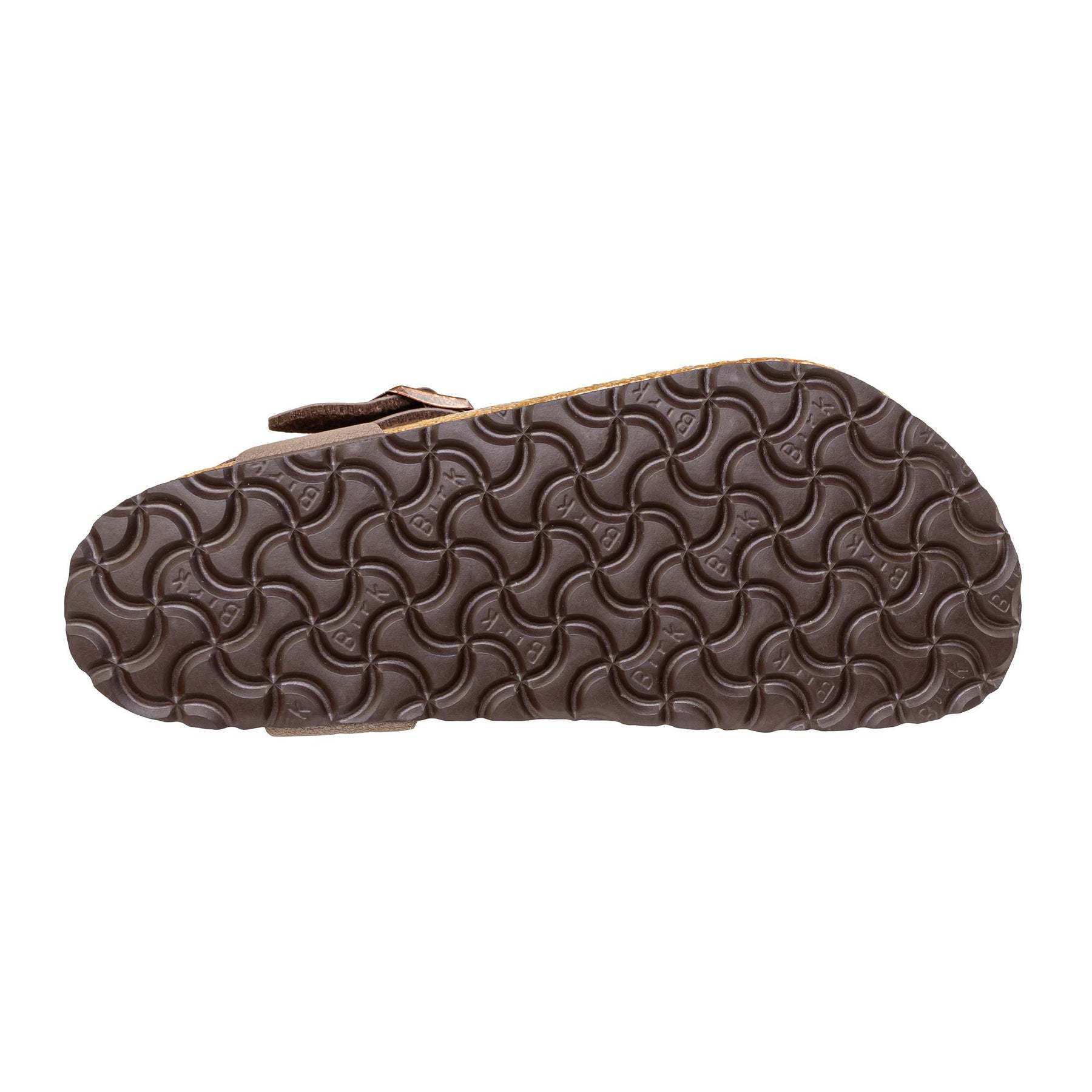 Il popolare sandalo BIRKENSTOCK Kairo con plantare dalla forma anatomica in sughero e lattice e sottopiede avvolgente in pelle scamosciata conquista per il riuscito connubio di design e comfort. Il sandalo ha un cinturino per il tallone e sul dorso del piede regolabile individualmente tramite una fibbia di metallo. La tomaia è n pregiata pelle Nabuk oliata lavorata senza cuciture.